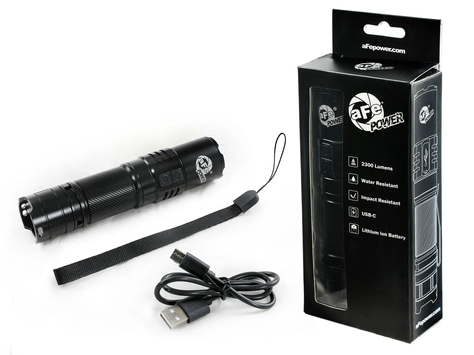 Whether you’re working on your car, in the garage, around the house, or on the go, this 2300-lumen aFe POWER LED flashlight delivers bright, adjustable lighting from a focused spot beam to a wide flood. Easily tailor the output to match any task or environment.