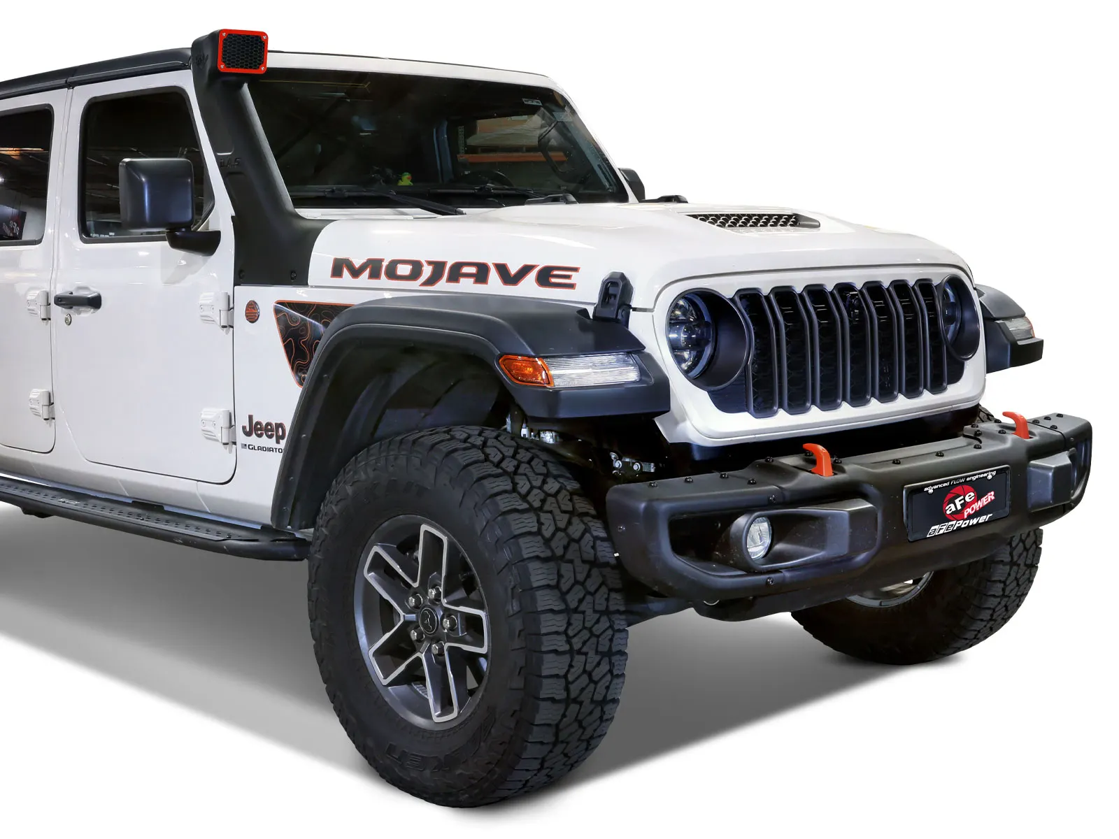 Engineered for high-speed desert airflow and extreme environments, the aFe POWER Dynamic Air Scoop (D.A.S.) Snorkel delivers clean, elevated air intake where it matters most. Designed specifically for the Jeep Gladiator Mojave, this system features a taller, model-specific riser to match the Mojave’s unique hood profile — ensuring proper fitment without compromise.